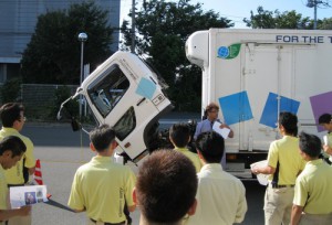 今回、例年より早く、7月6日に愛川物流センター、7月10日に横浜共配センターにて「安全の集い」を開催しました。 安全の集いは、近隣の警察署の講話、安全講習会、小集団発表会、被害者の手記、実技KYTなど、毎年交通事故撲滅のための内容を、全拠点で実施しています。 そして、サービスドライバーに対し、直接、安全に対するOJTを実施するものです。 | ![]() |