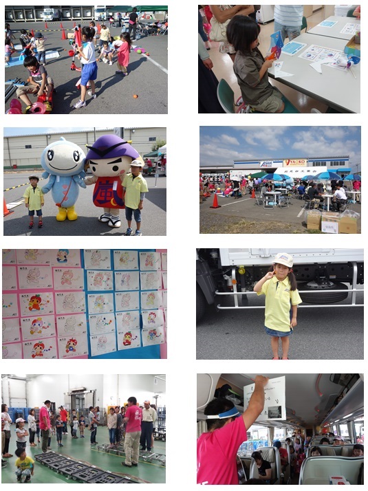 焼きそばやかき氷、唐揚げなどを提供した模擬店、また、トラック試乗、倉庫内探検、お父さんと同じ制服を着ての記念撮影、企業様のご協力による高級バスに乗車してのクイズ大会、働く車の運転試乗体験。屋内、屋外での楽しい催事など、どれもこれも好評で、ご来場下さった皆様に楽しんで頂けたと思います。