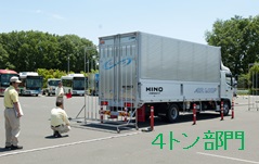 今回トラック部門では日野自動車羽村工場お客様テクニカルせンター様の広大なコースをお借りしてのコンテストとなりました。競技は、実技技能競技、点検競技、学科試験の3種目の総合成績により行われましたが、研修ムードの中にも白熱したコンテストとなり、思い出深い催しものとなりました。